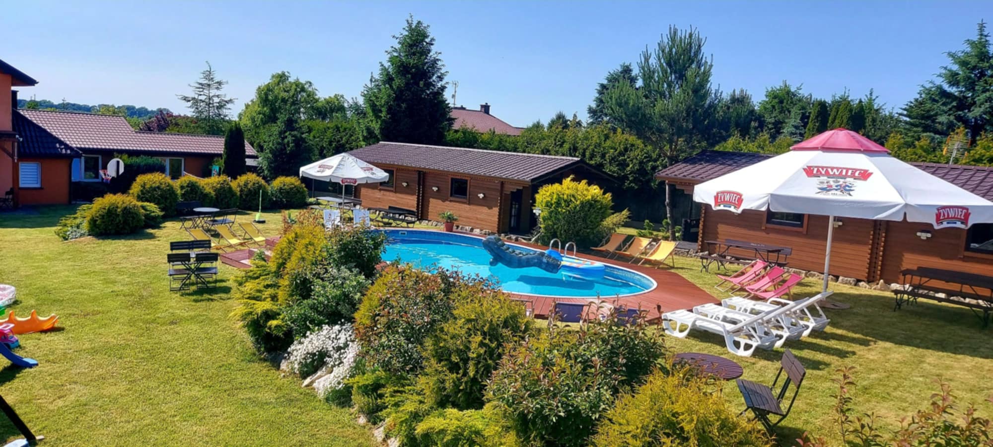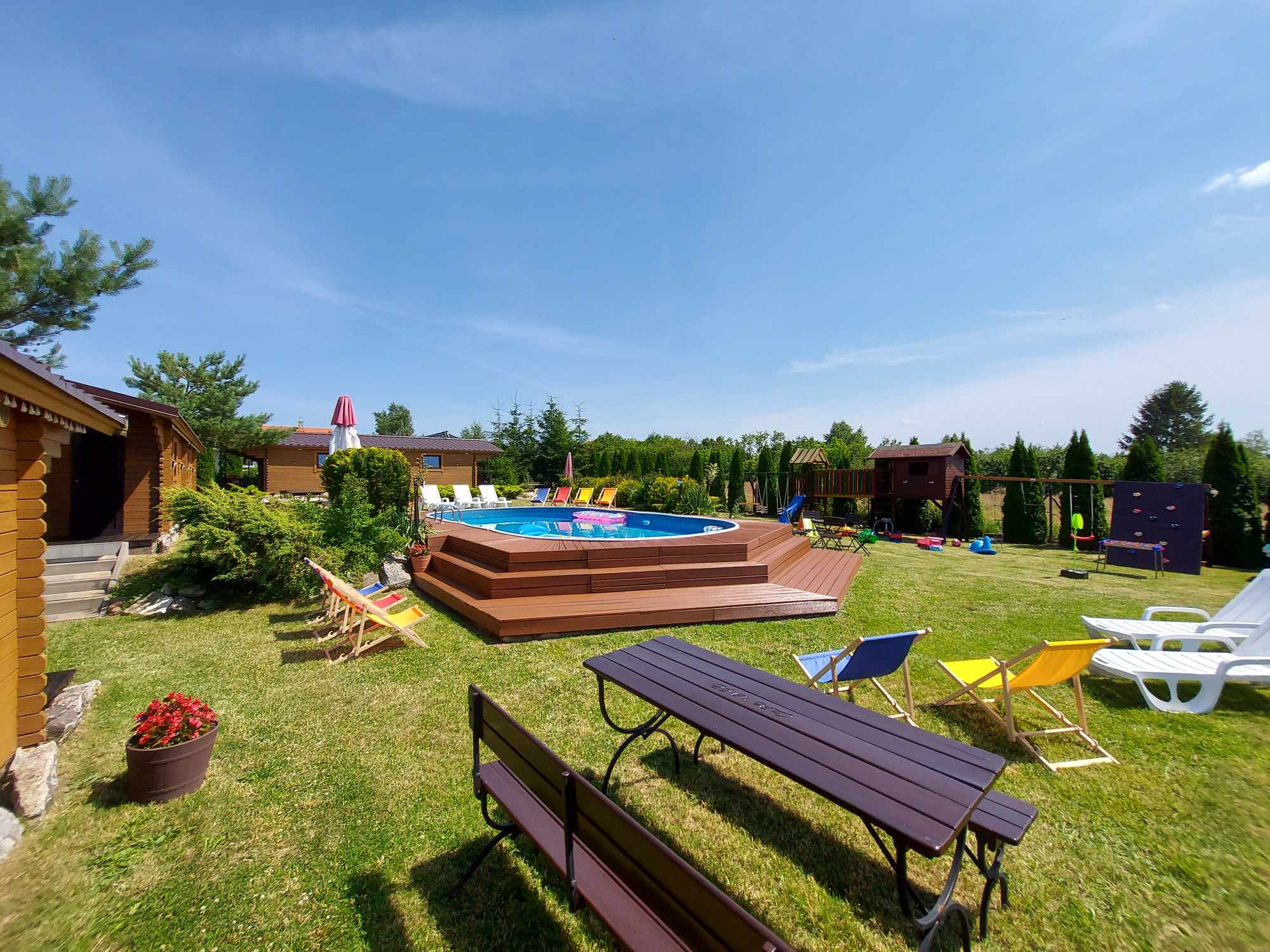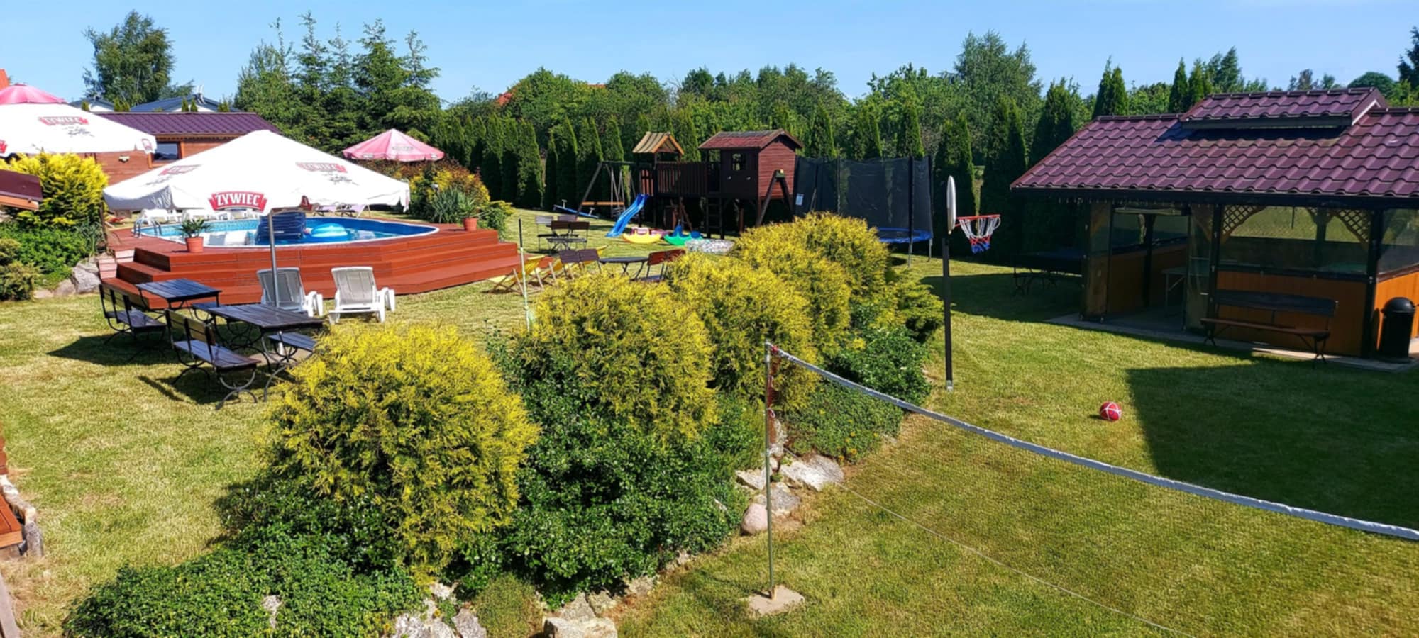 Oferujemy domki położone przy basenie na pełnej zieleni działce. Posiadamy wiele atrakcji dla dzieci : basen , boisko do badmintona, plac zabaw dla dzieci z trampoliną , piłkarzyki, stół do tenisa stołowego, mały bilard , kosz do koszykówki, lotki itd. Organizowane są ogniska oraz wieczorne seanse filmowe dla dzieci.
